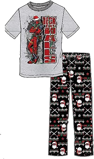Marvel Deadpool Deck The Halls Men's Two Piece Pajama Set