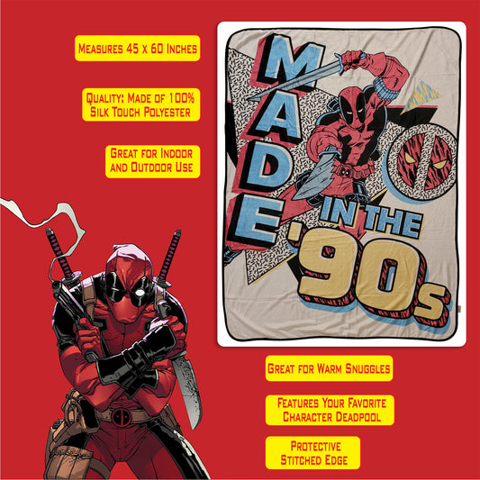 Marvel Deadpool Made in The 90s Softest Comfy Throw Blanket for Adults & Kids | Measures 60 x 45 Inches